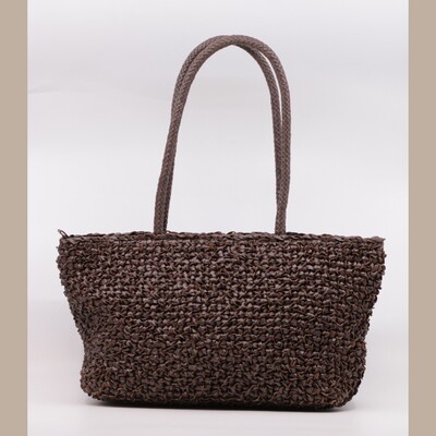 Gevlochten handtas van Allan K. De afmetingen zijn : 22cm hoog, 30 cm breed en 15 cm diep.
