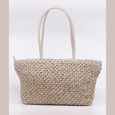Gevlochten handtas van Allan K. De afmetingen zijn : 22cm hoog, 30 cm breed en 15 cm diep.