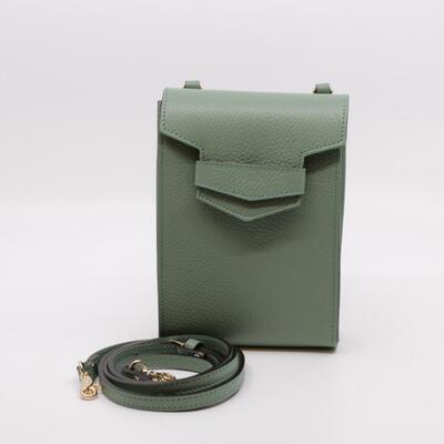 Handtas/gsmtasje van het italiaanse merk Carol J. Uitgewerkt in leder met riem om crossover te dragen. Afmetingen zijn : hoogte 18.5 cm, breedte 12.5 cm en diepte 4.5 cm.