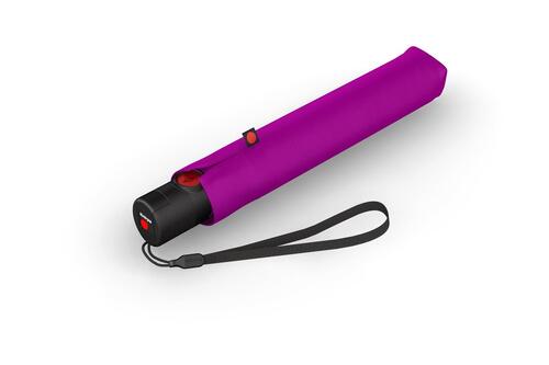 De T200 is de opvolger van de T2 - werelwijd Knips best verkochte paraplu -. Deze medium Knirps Duomatic heeft een extreem sterke driedelige stok uit aluminium en is 20% sterker als een standaard paraplu. Door een niewe techniek vergt de bediening van het Duomatic systeem 30% minder kracht ten opzichte van andere paraplus! De fiber baleinen met carbon versterkte onderdelen zorgen voor maximale stabiliteit. Deze paraplu wordt geleverd met een opberghoes met soufle en ritssluiting om uw paraplu gemakkelijk op te bergen. De T200 is een sterke lichtgewicht automatisch open/dicht paraplu met een groot scherm en maximaal bedieningscomfort. Het gewicht is 320 gram.
