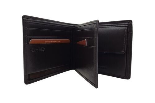 Lage portefeuille van het merk Bear Design. Afmetingen zijn 9 cm hoog, 15 cm breed en 1.5 cm diep. RFID bescherming.